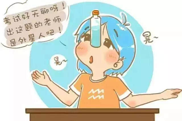 考試時,多愁善感的雙魚面對"攔路虎",就托著下巴犯起愁來:“這都怪老師,出那么難的題目也不提前通知我一聲,這要我怎么解啊?我的運氣真是差!”