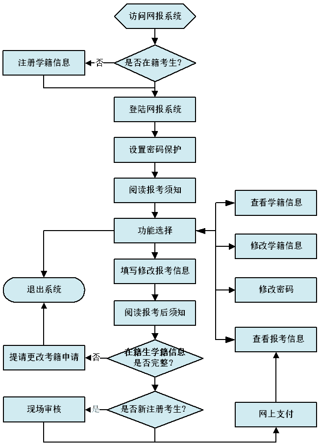 11、在籍生準考證、身份證不能為空,且必須有照片的考生才能網(wǎng)上繳費,成功報考。