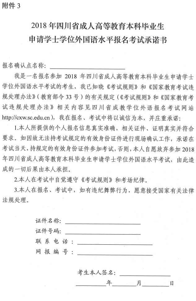 為做好2018年四川省成人高等教育本科畢業(yè)生申請學(xué)士學(xué)位外國語水平報(bào)名考試(以下簡稱成教學(xué)位外語報(bào)名考試)工作,現(xiàn)將有關(guān)事宜通知如下: