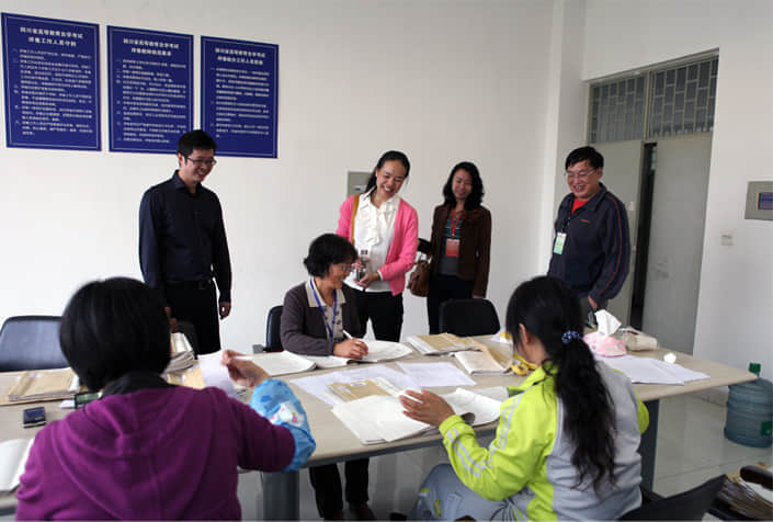 10月29日,四川省教育考試院楊雅娟科長一行3人對我校122次高等教育自學(xué)考試評卷工作進(jìn)行了檢查。檢查中,省教育考試院領(lǐng)導(dǎo)對我校評卷工作的組織安排、現(xiàn)場管理、安全保密及后勤保障等工作給予了充分肯定,并對參加此次評卷工作的全體人員表示了親切的慰問和感謝。
