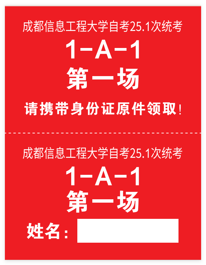 號(hào)碼牌上聯(lián)由考生自行保管。號(hào)碼牌如下圖所示: