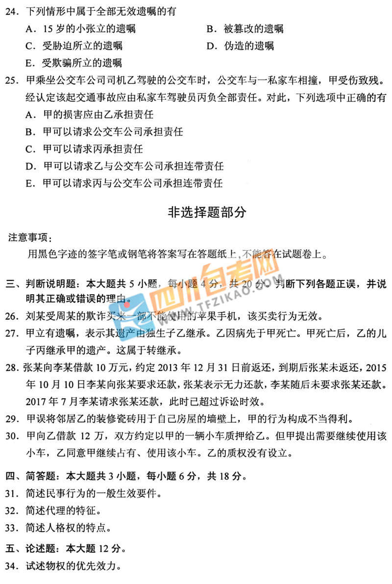 | 針對《民法學》這樣的科目,應該如何學習才能通過考試呢?四川自考網(wǎng)建議大家除了看教材以外,一定要多刷題,并且去理解記憶,不要死記硬背。下面給大家整理了 全國2019年10月自考00242《民法學》真題,希望大家認真做題,自查自糾,早日順利的通過考試。 |