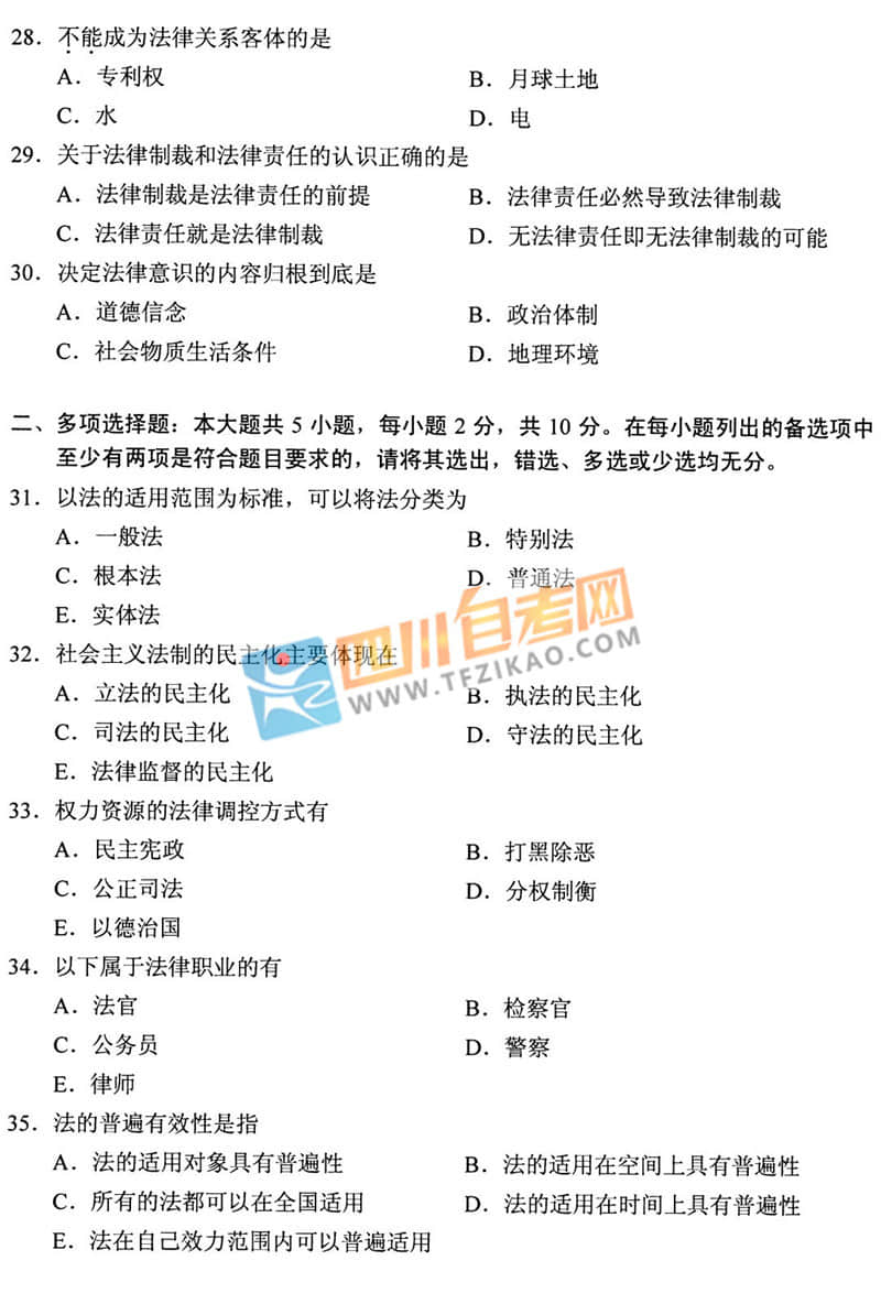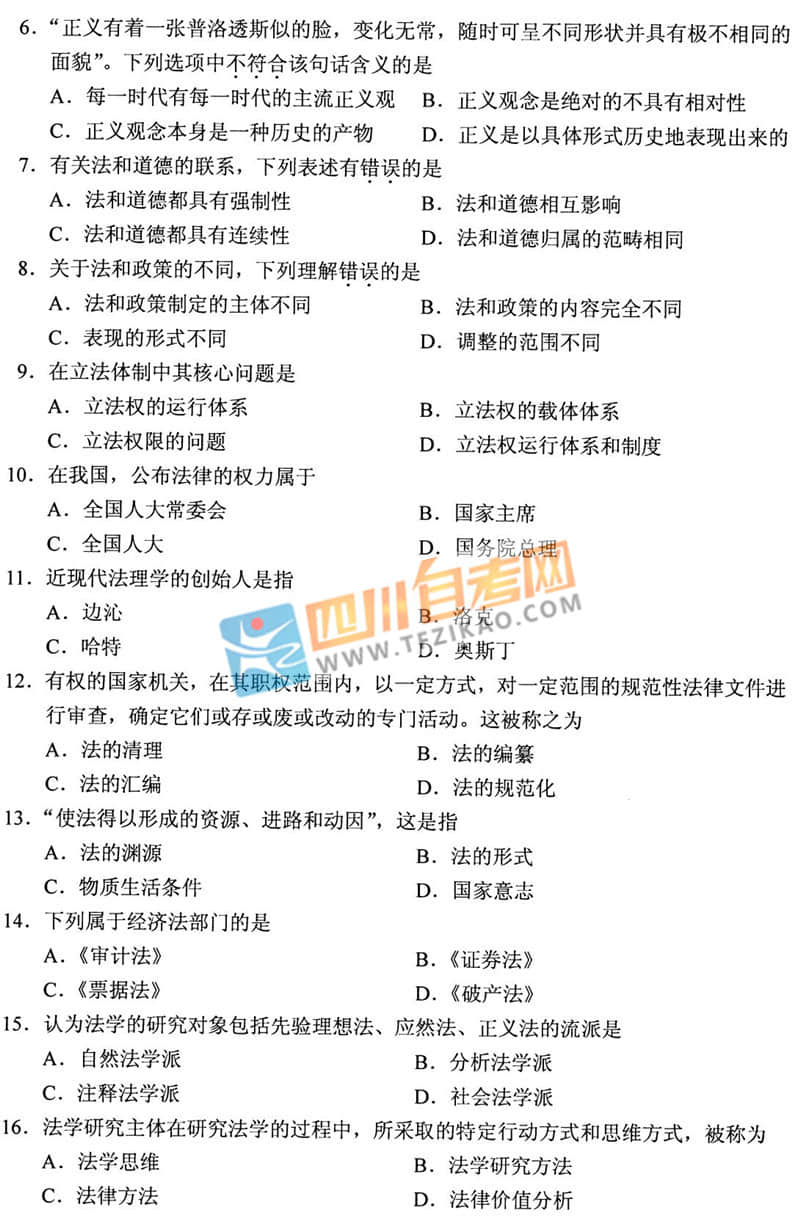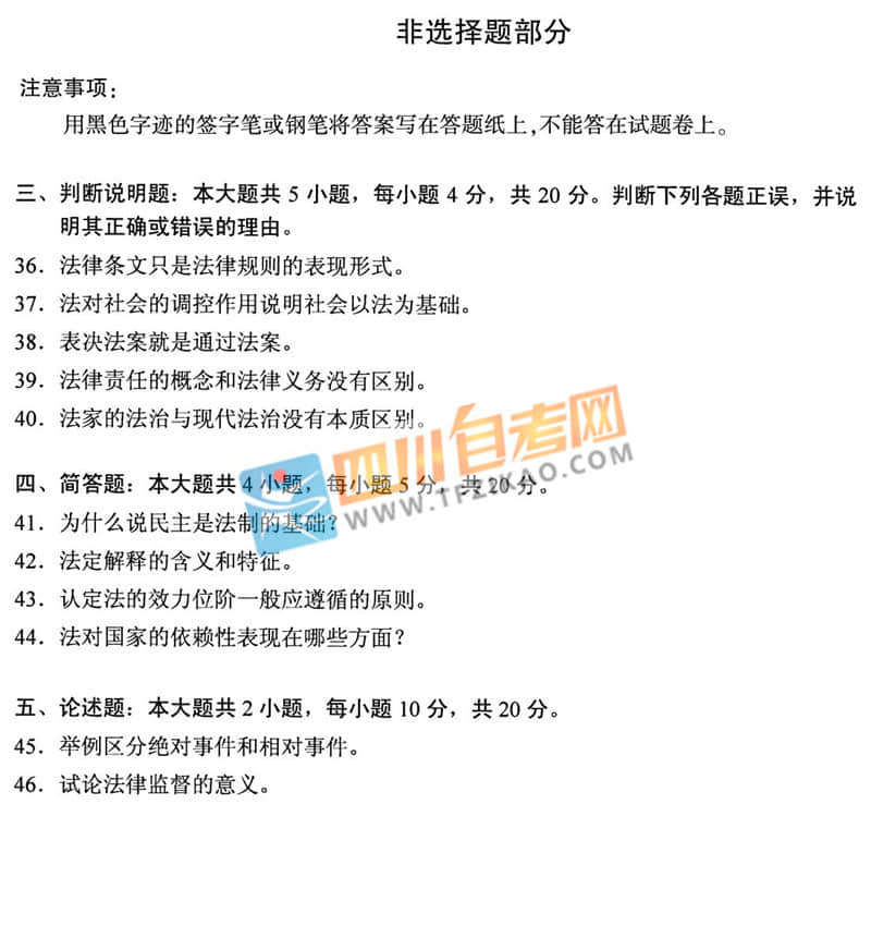 | 針對(duì)《法理學(xué)》這樣的科目,應(yīng)該如何學(xué)習(xí)才能通過考試呢?四川自考網(wǎng)建議大家除了看教材以外,一定要多刷題,并且去理解記憶,不要死記硬背。下面給大家整理了 全國2019年10月自考05677《法理學(xué)》真題,希望大家認(rèn)真做題,自查自糾,早日順利的通過考試。 |