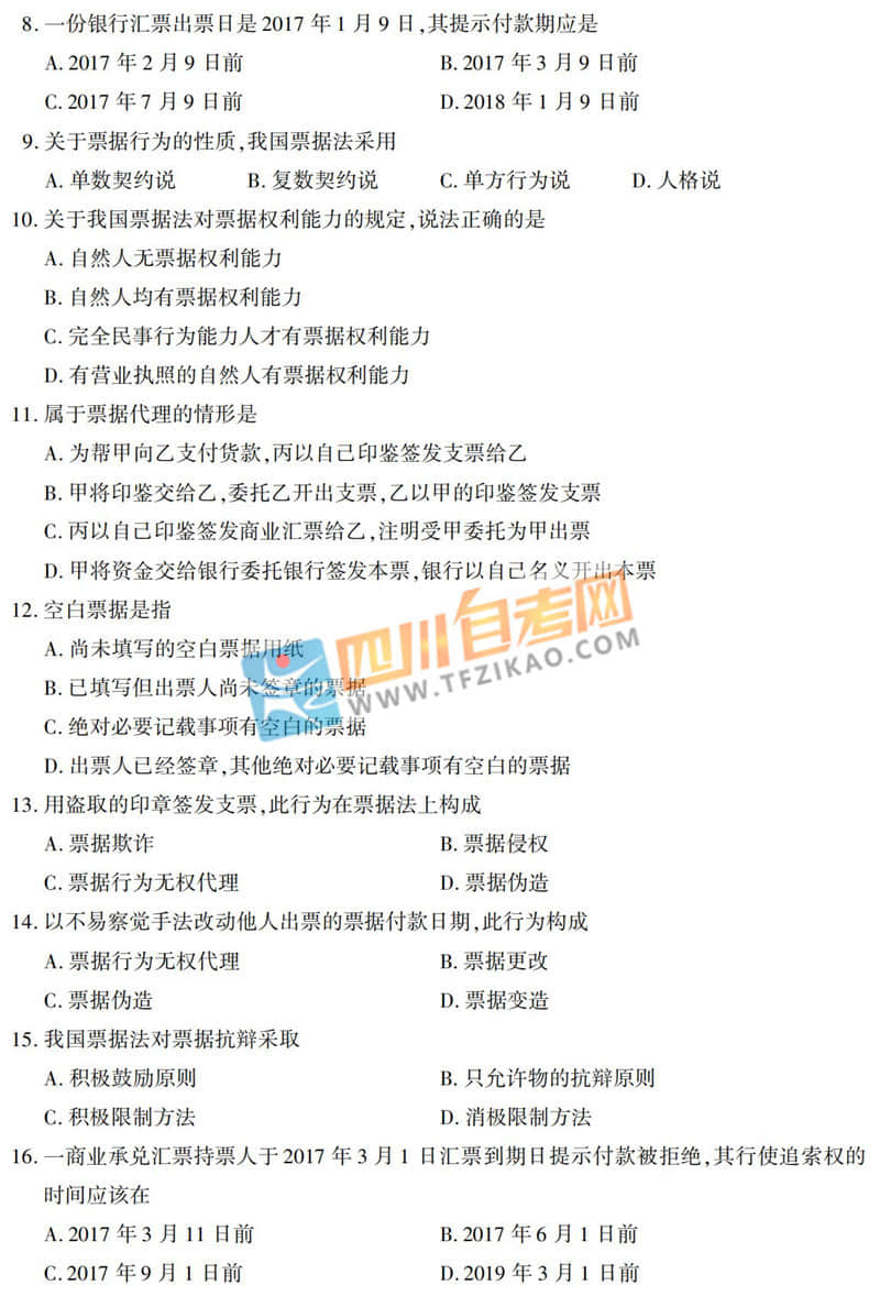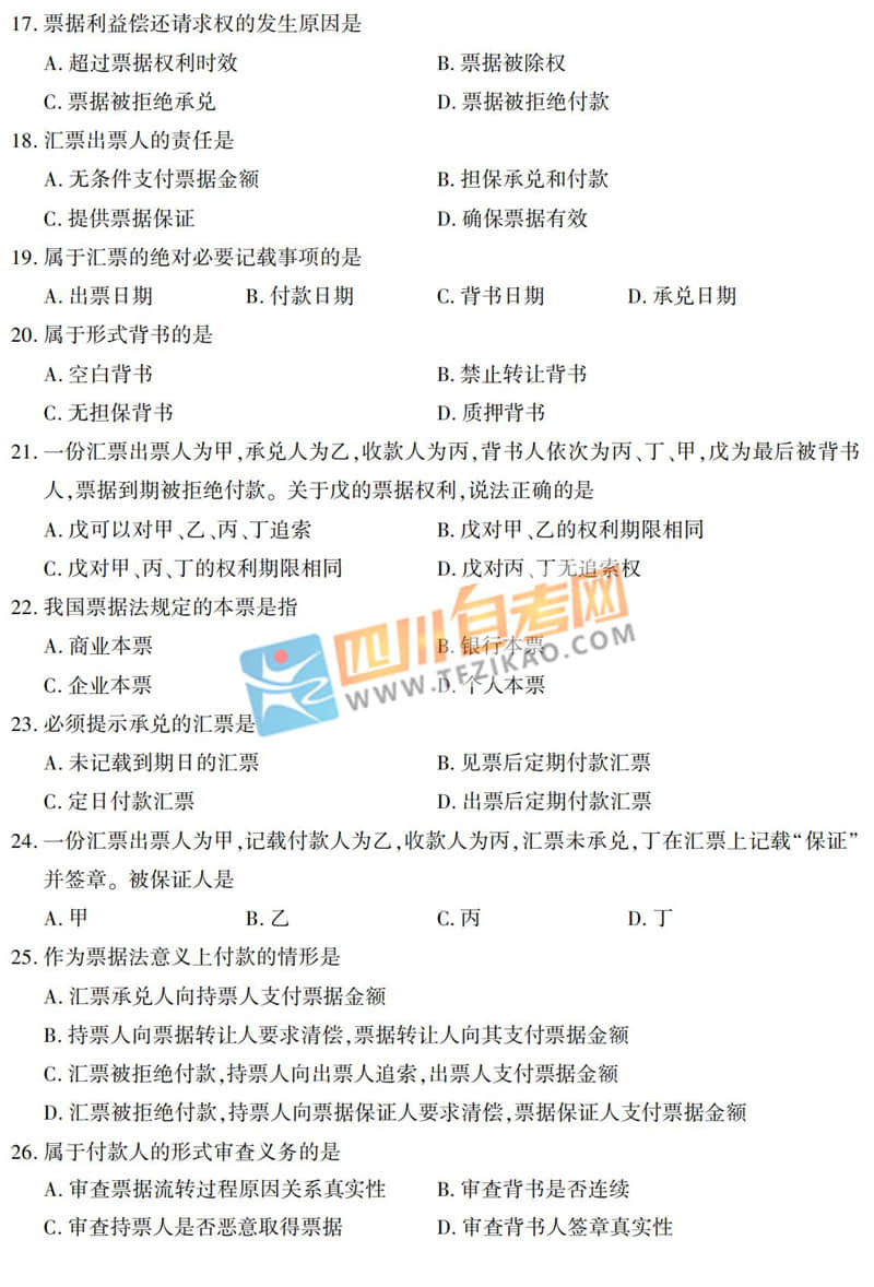 | 針對《票據(jù)法》這樣的科目,應(yīng)該如何學習才能通過考試呢?四川自考網(wǎng)建議大家除了看教材以外,一定要多刷題,并且去理解記憶,不要死記硬背。下面給大家整理了 全國2019年10月自考00257《票據(jù)法》真題,希望大家認真做題,自查自糾,早日順利的通過考試。 |