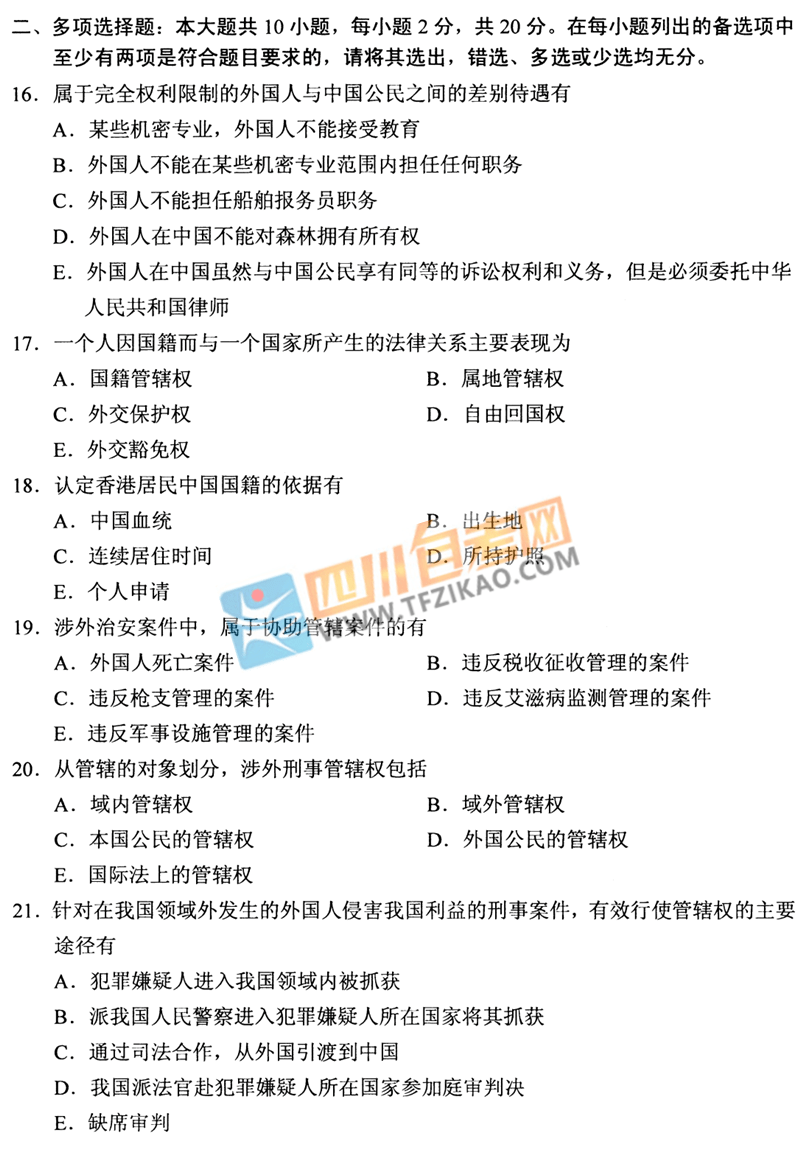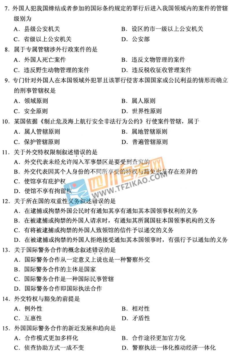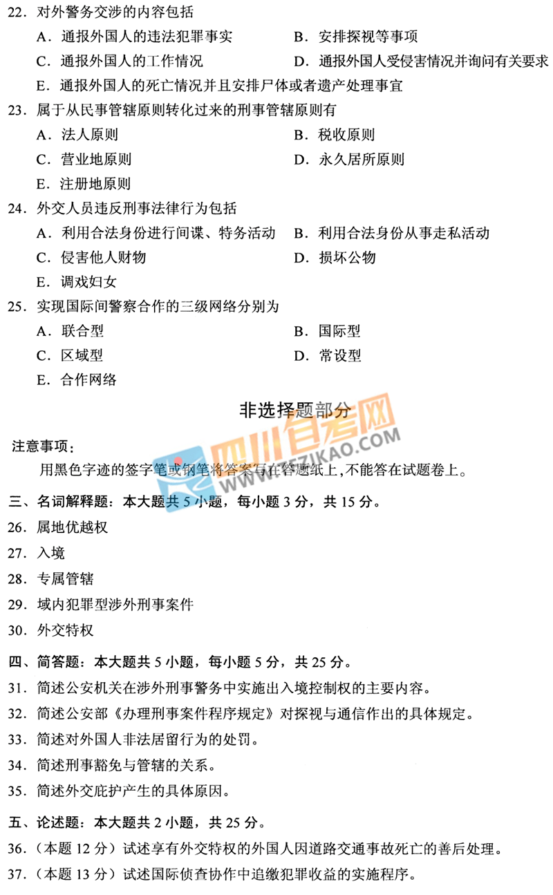 | 針對(duì)《涉外警務(wù)概論》這樣的科目,應(yīng)該如何學(xué)習(xí)才能通過考試呢?四川自考網(wǎng)建議大家除了看教材以外,一定要多刷題,并且去理解記憶,不要死記硬背。下面給大家整理了 全國(guó)2020年8月自考00373《涉外警務(wù)概論》真題,希望大家認(rèn)真做題,自查自糾,早日順利的通過考試。 |