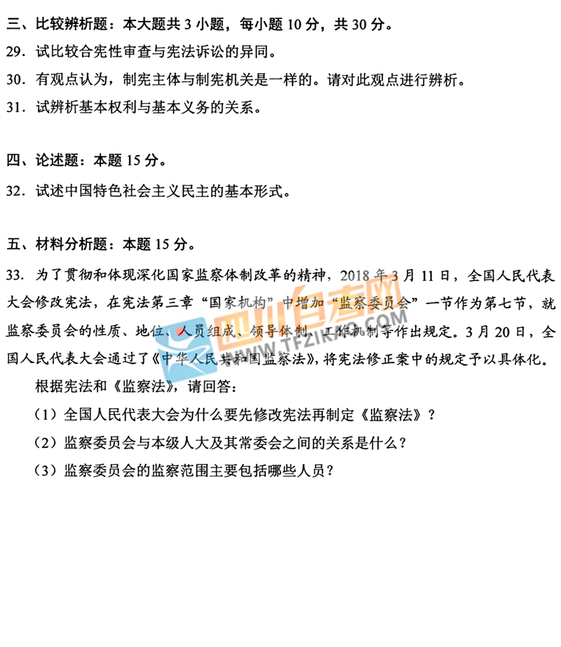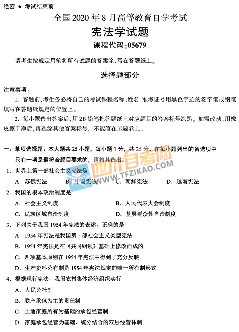 | 針對(duì)《憲法學(xué)》這樣的科目,應(yīng)該如何學(xué)習(xí)才能通過考試呢?四川自考網(wǎng)建議大家除了看教材以外,一定要多刷題,并且去理解記憶,不要死記硬背。下面給大家整理了 全國(guó)2020年8月自考05679《憲法學(xué)》試題,希望大家認(rèn)真做題,自查自糾,早日順利的通過考試。 |