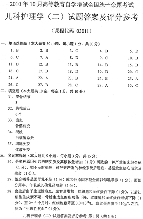 兒科護(hù)理學(xué)(二)試題